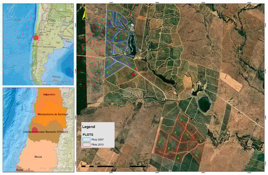 - Uribe, A.; Catalan, H. Caracterización Hidroclimatológica y del uso de suelo del Secano de la Región de O’higgins; Boletin INIA-Instituto de Investigaciones Agropecuarias: Punta Arenas, Chile, 2016; Volume 1, pp. 49–81. [Google Scholar]