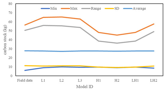The descriptive statistics of tree-level carbon stock of the observations and model estimates.