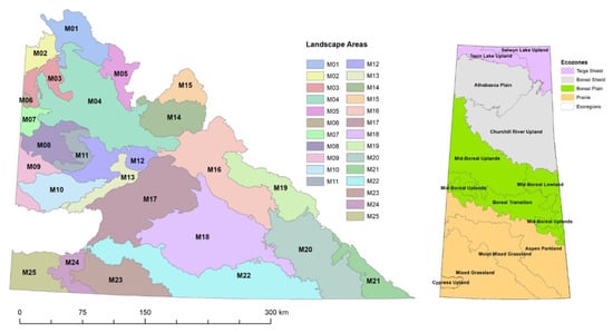 - Acton, D.F.; Padbury, G.A.; Stushnoff, C.T. The Ecoregions of Saskatchewan; Saskatchewan Environment and Resource Management, Canadian Plains Research Center: Regina, SK, USA, 1998. [Google Scholar]