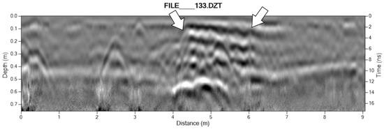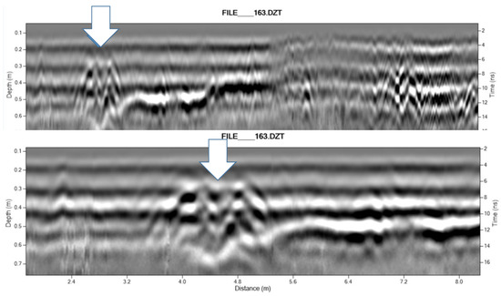 - Sunseri, J.U.; Byram, S. Site Interiography and Geophysical Scanning: Interpreting the Texture and Form of Archaeological Deposits with Ground-Penetrating Radar. J. Archaeol. Method Theory 2017, 71, 1400–1424. [Google Scholar] [CrossRef]