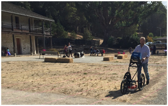 Several research themes in the central California geographic area have foci explicitly dependent on the identification and interpretation of adobe features. Historic adobe structures dating between the late 1700s and the late 1800s are present through much of coastal California and inland valleys. Adobe structures ranging in size from small, one-room dwellings and garden walls to sprawling presidios and mission churches represent a central aspect of California’s Spanish, Mexican, and U.S. heritage. For anthropological archaeologists, adobe walls often represent important boundaries between interior and exterior spaces. While larger structures such as major ranchos, churches, presidios, etc., are largely known from historic records, drawings and maps, smaller adobe dwellings were also common in California. These often housed Native people who were variously involved in the mission and rancho systems that prevailed across the coast and inland valleys for generations. It is likely that most buried adobe ruins in California were associated with Native people and households of people from a range of ethnic origins in addition to better known rancho and mission structures. Thus, techniques that allow the more complete documentation of archaeological adobe stand to illuminate a less well-documented aspect of California’s cultural heritage [7,8,9,10,11]. Given the prevalence of adobe architectural ruins in archaeological sites in other seasonally dry regions, such as the Southwest and Mesoamerica, Europe (cob) the Mediterranean, and Africa (dagga or ferey), the development of subsurface survey techniques for adobe structures has vast archaeological potential. Previous investigations by Conyers [12], Sturm and Crown [13], and others, have demonstrated that adobe walls can be delineated through GPR.