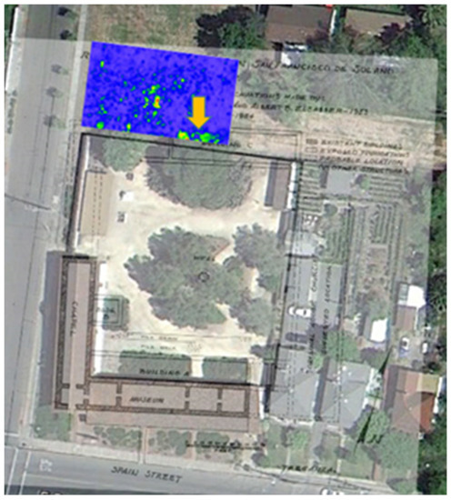 - Byram, S. Report on Ground-Penetrating Radar Investigations at Sanchez Adobe Park; San Mateo County Parks: Redwood City, CA, USA, 2014. [Google Scholar]