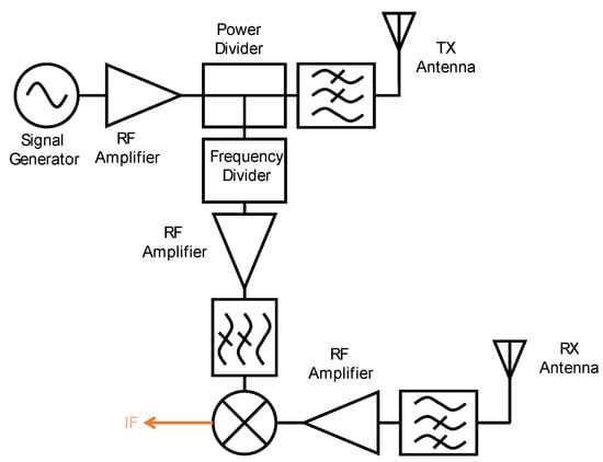 - Gallagher, K.A.; Narayanan, R.M.; Mazzaro, G.J.; Sherbondy, K.D. Linearization of a harmonic radar transmitter by feed-forward filter reflection. In Proceedings of the 2014 IEEE Radar Conference, Cincinnati, OH, USA, 19–23 May 2014; pp. 1363–1368. [Google Scholar] [CrossRef]
