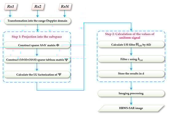 where and are the Fourier transform of and , . After calculating , a uniformly sampled signal can be obtained. After the traditional SAR chirp scaling (CS) algorithm, an image without ambiguity can be obtained. Since the proposed algorithm is actually performed in the frequency domain, it is relatively simple to use the CS algorithm.