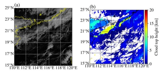 Clouds are key entities that affect the radiation budget of the Earth’s atmospheric system. In particular, clouds reflect solar shortwave radiation into space and absorb terrestrial longwave radiation. The cloud-top height (CTH) has been used in many climate and weather forecast models to simulate the radiative effects and vertical structure changes of clouds [1]. Satellite remote sensing is the most effective way to retrieve CTHs because it can provide continuous global information with a high accuracy. Therefore, in recent decades, several methods have been used to retrieve CTHs via satellite measurements, such as infrared (IR)-measurement-based methods (CO2-slicing method and single window channel method), active-measurement-based methods, and stereoscopic methods.