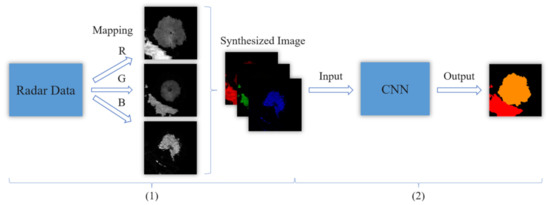 The overall process of the task consists of two main parts (Figure 1). We first map and render the radar data to generate an RGB image as the input of the convolutional neural network. The network is then used to train and segment the image to obtain biological echo. The rest of the paper is organized as follows. Section 2 introduces the reasons and specific methods for rendering raw radar data into images. Section 3 presents the architecture of our proposed network. Section 4 details the performance of our model and makes comparison with previous study. Section 5 discusses the results and future works. The summary is provided in Section 6.
