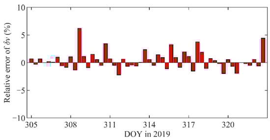 The maneuver accelerations derived from the GPS data have proven to be in good agreement with the onboard telemetry data [21]. Therefore, the GPS-derived results can be treated as references to evaluate the maneuver estimations by the BDS2-based POD. Figure 10 shows the relative errors of velocity changes obtained by the BDS2-based POD with respect to those obtained by the GPS-based POD, which are less than 7.0%, and the mean relative error is 1.2%. The result indicates that the maneuver estimations of the LEOs derived from the regional BDS2 data are on par with those derived from the global GPS data.