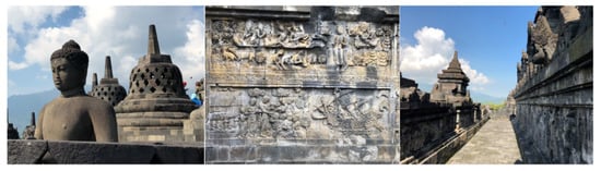- Miksic, J.; Tranchini Marcello, T.A. Borobudur: Golden Tales of the Buddhas; Tuttle Publishing: Clarendon, VT, USA, 2012. [Google Scholar]