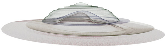 Moreover, we merged the four layers together to describe the complete shape of the foundation. Figure 15 shows the fused transparent results of the merged dataset of the foundation. The shape of the foundation, which is formed from the three smaller natural hills (layers A, B, and C in Figure 5) and the artificially built hill (layer D in Figure 5), is visualized clearly.