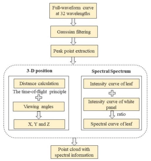 The HSL full-waveform data were saved in the comma-separated values (.csv) format. To extract the spectral and structural information of targets, several steps were required for data processing, as shown in (Figure 2).