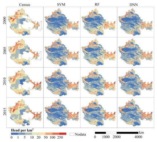 - Zhao, S.; Liu, Y.; Zhang, R.; Fu, B. China’s population spatialization based on three machine learning models. J. Clean. Prod. 2020, 256, 120644. [Google Scholar] [CrossRef]