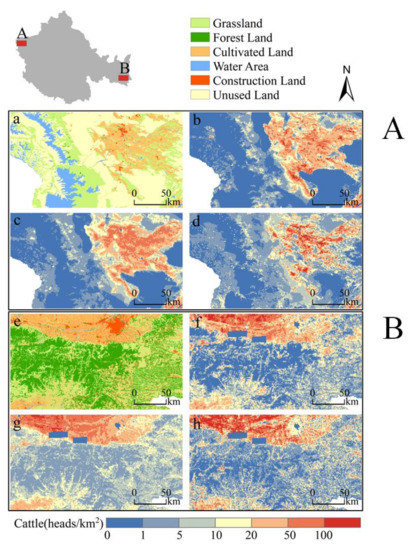 - Qiao, Y.; Zhu, H.; Shao, X.; Zhong, H. Research on Gridding of Livestock Spatial Density Based on Multi-Source Information. China Sci. Technol. Res. Guide 2017, 49, 53–59. [Google Scholar] [CrossRef]