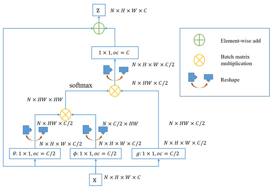 z is the output of the non-local block, and is a convolution to make the dimension of non-local information consistent with the input. The structure of a nonlocal module can be represented in Figure 2.