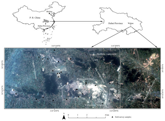 As in our previous studies, we conducted experiments in Wuhan City, China in an area of 109.4 km2 [9,12,13] (Figure 1). The terrain of the study area is complex and includes multiple agricultural-related land covers in different phenological periods.