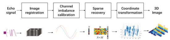 As shown in Figure 4, firstly, the azimuth-range units in different SAR images should be related to the same scatterers after registration [28]. Secondly, channel phase errors, which are caused by positioning or system errors, are compensated to focus the inversion results in the elevation direction. The minimum entropy method is applied to estimate the phase errors. Thirdly, the sparse recovery methods are used to estimate the elevation positions of scatterers in each azimuth-range unit. Finally, the coordinate system is transformed from radar system into geodetic system.