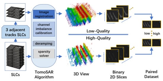 High-quality slice set: The high-quality slice set shares the same procedure as the low-quality set, but uses all SAR images to generate high-SNR and high-elevation spatial resolution data.
