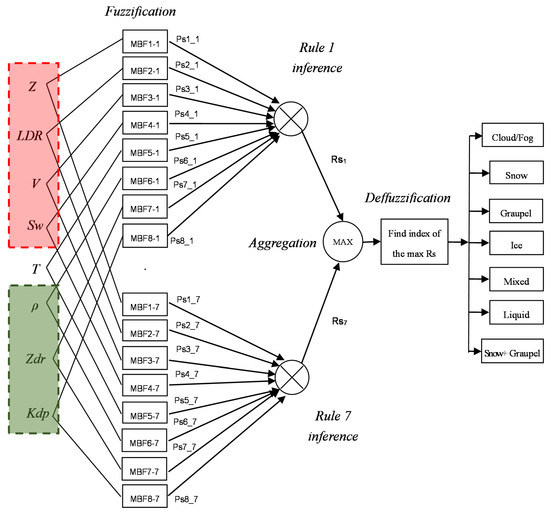 - Liu, H.; Chandrasekar, V. Classification of hydrometeors based on polarimetric Radar measurements: Development of fuzzy logic and neuro-fuzzy systems and in-situ verification. J. Atmos. Ocean. Technol. 2000, 17, 140–164. [Google Scholar] [CrossRef]
