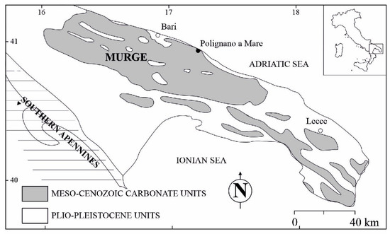 - Parise, M. Surface and subsurface karst geomorphology in the Murge (Apulia, southern Italy). Acta Carsologica 2011, 4, 79–93. [Google Scholar] [CrossRef]