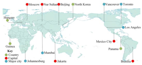 Figure 4 illustrates the geospatial distribution of our new dataset. Most remote-sensing images in S2Looking relate to rural areas near the marked cities. The chosen cities have been a particular focus of satellite imagery, so it was easier to acquire bitemporal images for these locations. Together, the adjacent rural areas cover most types of rural regions around the world.
