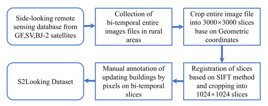 An illustration of the data-processing pipeline for our S2Looking dataset is shown in Figure 6. This pipeline is discussed in greater detail below: