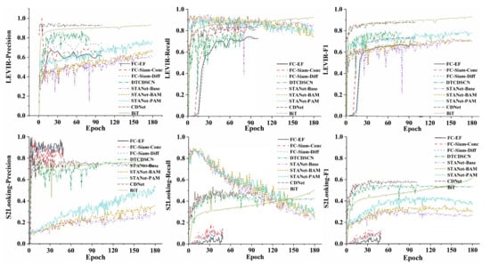 Figure 8 shows the results of fine-tuning the various change-detection algorithms on the LEVIR-CD+ and S2Looking datasets.