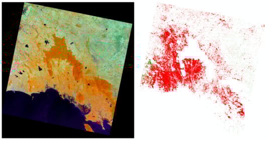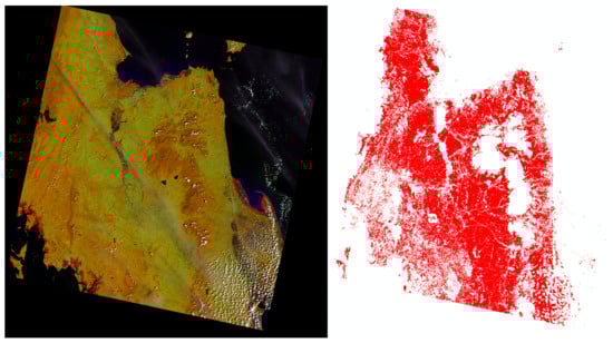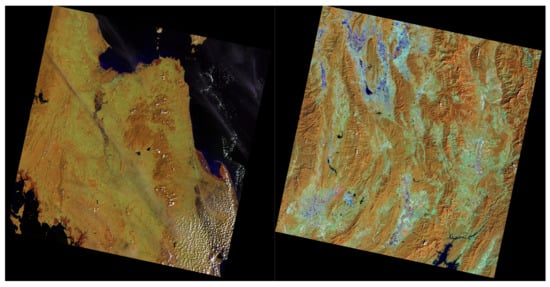 An illustration of a Landsat-8 scene (northern province (left) and northeastern region (right).