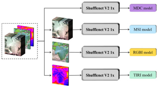RGBI, MSI, TIRI, and MDC models for detection. The RGBI, MSI, and TIRI sets are obtained according to the corresponding channel ranges from the input MDC set. Based on the ShuffleNet V2 1x, MDC, MSI, RGBI, and TIRI models are trained on the relevant sets.