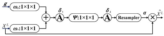 In AAU-Net, attention gates are mainly used in each module of the decoding stage to suppress irrelevant areas, which is similar to Attention U-Net [39]. The structure diagram of the attention gate [39,46,47] is shown in Figure 6.