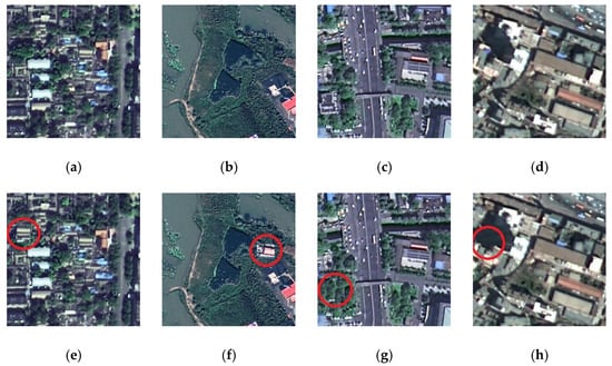 A set of examples of tampered RS images is shown in Figure 1. For tampered RS images, as shown in Figure 1b, it is difficult to determine whether they have been tampered with, even if they are compared with the original images, as shown in Figure 1a. Furthermore, it is also difficult to compare the “suspicious” RS images with the original RS images. Therefore, the data integrity of RS images must be guaranteed so that the RS images can be trusted and used with peace of mind. To address the above problem, some authentication technologies have been developed to ensure the integrity of RS images, including cryptography, digital watermarking, block chains, and perceptual hashing.