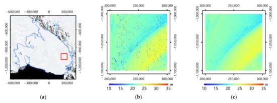 DEMs for different periods are also indispensable for calculating elevation and mass changes to support ice dynamics studies and sea level change estimates [,,]. Furthermore, detailed and spatially and temporally matched DEMs are required for calibration to obtain accurate geographical information on the ice sheet or ice shelf when using remote sensing data for polar research. [,].