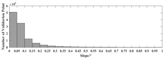 Number of OIB airborne points used to ICESat-2 RIS DEM evaluation. The horizontal coordinate is the slope of the surface from 0° to 1° with an interval of 0.05°.
