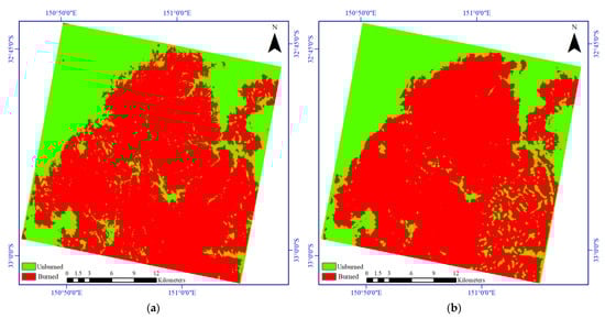 Figure 4 shows the incorporated burned area datasets for the first study area. Figure 5 illustrates the original incorporated dataset for the BAM for the second study area. The details for the incorporated datasets for both of the study areas are given in Table 1.