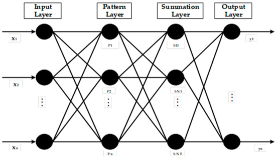 General Regression Neural Network (GRNN) was proposed by American scholar Specht D.F. in 1991, which is a new type of neural network based on nonlinear regression theory [29,30]. It can discover and continuously approximate the true value according to the implicit relationship in the sample data. Its advantage is that it has good approximation ability, recognition ability, and learning speed. There are few artificially adjusted parameters and only one threshold. Moreover, when the number of samples is small, the convergence of the output results and the results of the regression values are still considerable.