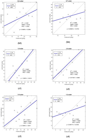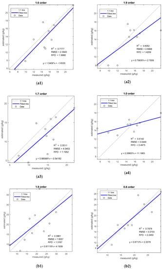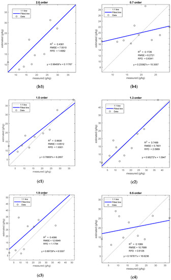 - Hong, Y.; Liua, Y.; Chen, Y.; Liu, Y.; Yu, L.; Liu, Y.; Cheng, H. Application of fractional-order derivative in the quantitative estimation of soil organic matter content through visible and near-infrared spectroscopy. Geoderma 2019, 337, 758–769. [Google Scholar] [CrossRef]