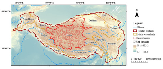 - Guoqing, Z. Dataset of River Basins Map over the TP (2016). 2019. Available online: https://data.tpdc.ac.cn/en/data/dff6b437-90a1-4729-8140-faafc544860f/ (accessed on 14 December 2021).
