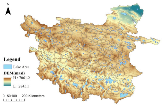 As components of the terrestrial hydrosphere, lakes participate in the natural water cycle and can, thus, reflect regional climate and environmental changes, and are indicators of climate change [1,2]. Following significant changes in the global climate, the study of the relationship between lakes and climate change has become a popular subject of research [3]. The Tibetan Plateau (TP), the “third pole” of the world, is home to the world’s highest, most numerous, and largest plateau lakes. Climate change on the TP is advanced [4], and due to its unique geographic location and special substratum, it has a significant influence on the climate of East Asia and the world [5]. Lakes on the TP are sensitive to climate change and play an important role in the natural water cycle and water balance [6]. Detecting lake areas on the TP and determining the factors that affect changes in lake areas are important in order to analyze the ecological environment of lake regions and the climate change occurring around them.