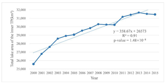 Total lake area of the inner TP from 2000 to 2015.