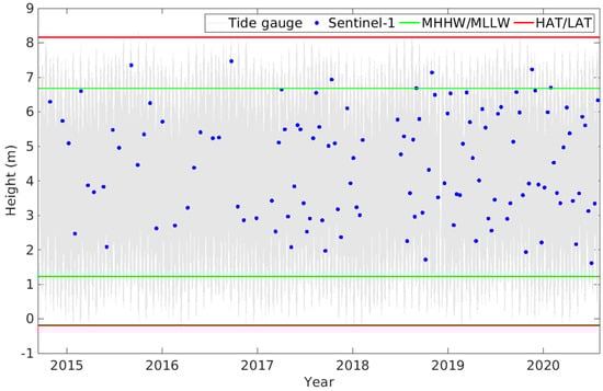 - Heygster, G.; Dannenberg, J.; Notholt, J. Topographic mapping of the german tidal flats analyzing SAR images with the waterline method. IEEE Trans. Geosci. Remote Sens. 2010, 48, 1019–1030. [Google Scholar] [CrossRef]