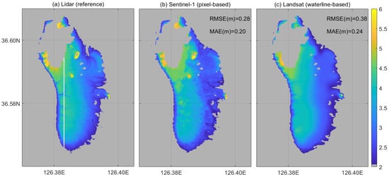 - Xu, Z.; Kim, D.-J.; Kim, S.H.; Cho, Y.-K.; Lee, S.-G. Estimation of seasonal topographic variation in tidal flats using waterline method: A case study in Gomso and Hampyeong Bay, South Korea. Estuar. Coast. Shelf Sci. 2016, 183, 213–220. [Google Scholar] [CrossRef] [Green Version]