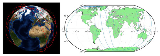 The satellite visibility was calculated by means of the simplified general perturbation model, which allows propagating the satellite position and velocity along the orbit [31]. The input to the model is given by NORAD and also stored on the EUMETSAT website (see https://service.eumetsat.int/tle/, accessed on 5 November 2021).