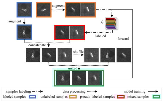 The self-consistent augmentation (SCA) semi-supervised learning basics for SAR target recognition unify several training strategies []. Since our method is a certain improvement on the basis of SCA, in this section, we review the necessary details of SCA to express our SAR ATR semi-supervised learning method clearly.