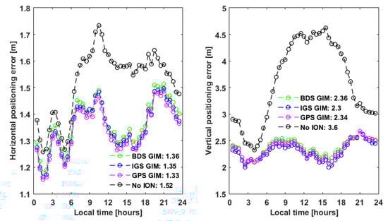 As shown in Figure 2, 48 globally distributed MGEX stations were also selected to investigate the performance of the BDS-based GIM in the position domain. The station coordinates derived from the final IGS solutions were used as a reference to calculate the position errors.