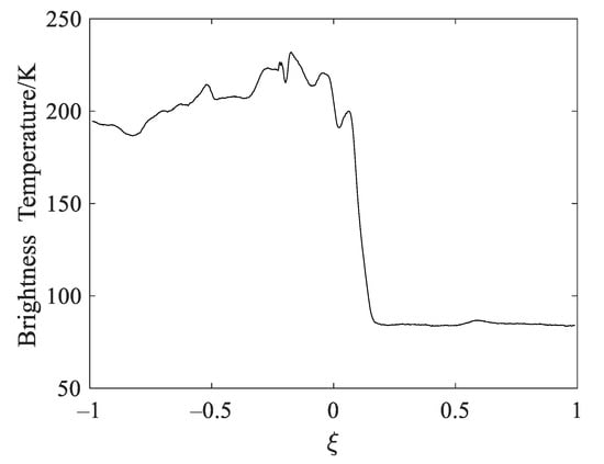 In the first experiment, the performances of all the regularization approaches are evaluated by the use of the original distribution, which derives from the L-band brightness temperature data of the H polarization in the ocean area observed by the Aquarius satellite on 21, August, 2013. The original brightness temperature distribution is shown in Figure 2, where the horizontal axis ξ = sin θ is the direction cosines in the Cartesian coordinates and θ is the incidence angle in the across-track dimension measured from the nadir.