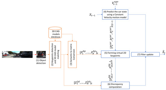 - Other approaches do not take into account the dynamic motion constraints of the detected cars while the proposed approach fuses these motion constraints with semantic information to increase estimation accuracy;