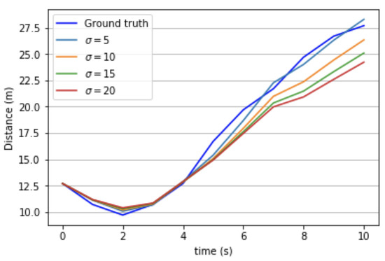 - According to Figure 9, the proposed algorithm is robust against different levels of measurement noise for distances up to 17 m. However, for distances greater than 17 m, the increase in measurements uncertainties will affect the estimation accuracy;
