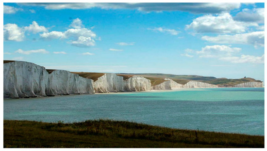 Seven Sisters cliff, East Sussex (4 km long × 75 m high).