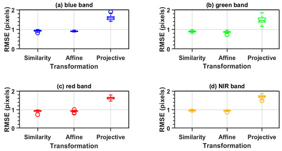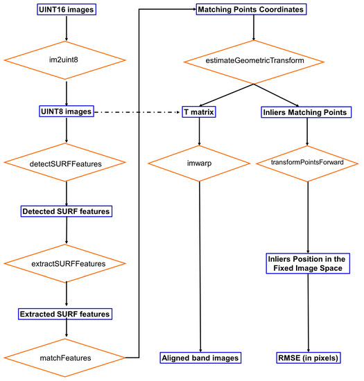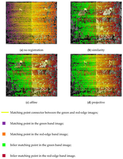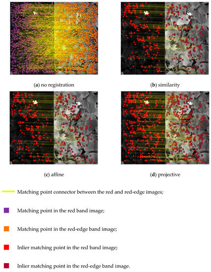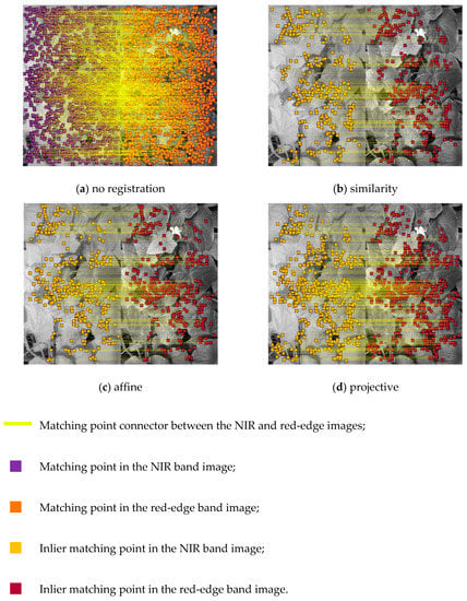 - Hassapour, M.; Javan, F.D.; Azizi, A. Band to band registration of multi-spectral aerial imagery-relief displacement and miss-registration error. In Proceedings of the International Archives Photogrammetry, Remote Sensing, and Spatial Information Sciences, GeoSpatial Conference, Karaj, Iran, 12–14 October 2019; Volume 42, pp. 467–474. [Google Scholar]