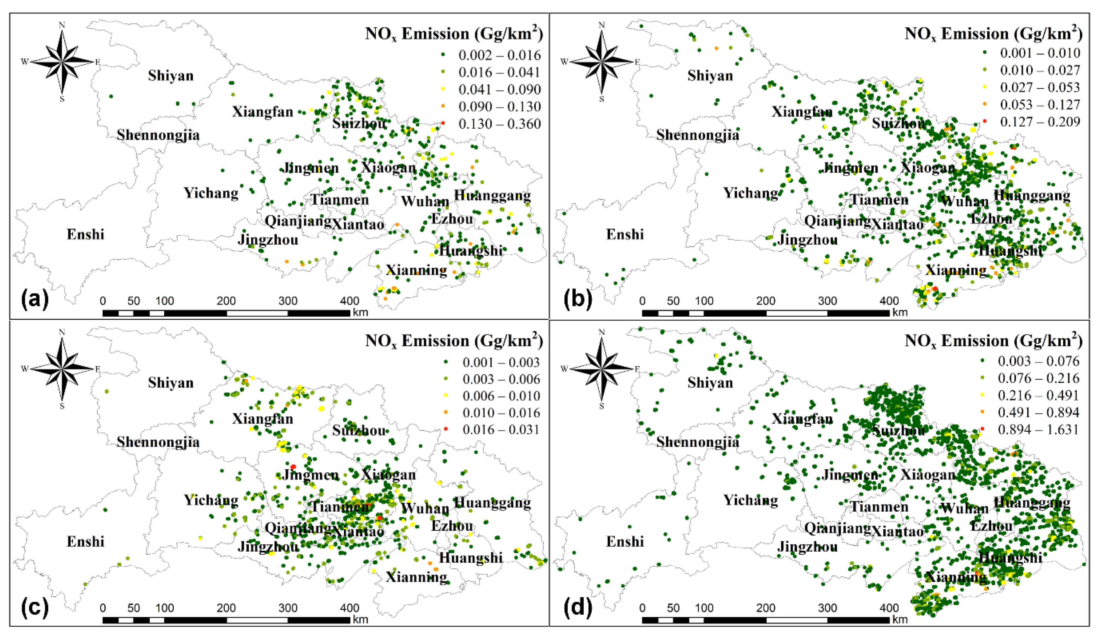 - Gao, J.; Zhu, B.; Wang, Y.; Kang, H. Distribution and long-term variation of troposphric NO2 over China during 2005 to 2013. China Environ. Sci. 2015, 35, 2307–2318. [Google Scholar]