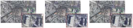 Figure 1 shows three color images of different observation angles that were selected from the experimental CMARS data. It can be observed that the relationship between buildings and their shadows changes from image-to-image. The train on the light rail and vehicles on the road are obviously moving during the period of continuous observation.