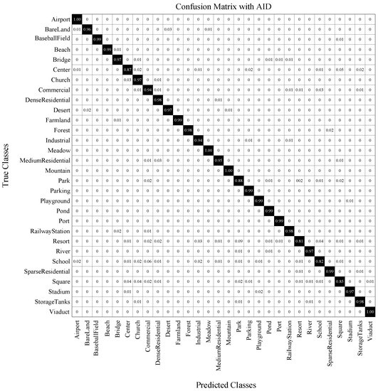 - Xia, G.S.; Hu, J.; Hu, F.; Shi, B.; Bai, X.; Zhong, Y.; Zhang, L.; Lu, X. AID: A benchmark data set for performance evaluation of aerial scene classification. IEEE Trans. Geosci. Remote Sens. 2017, 55, 3965–3981. [Google Scholar] [CrossRef]